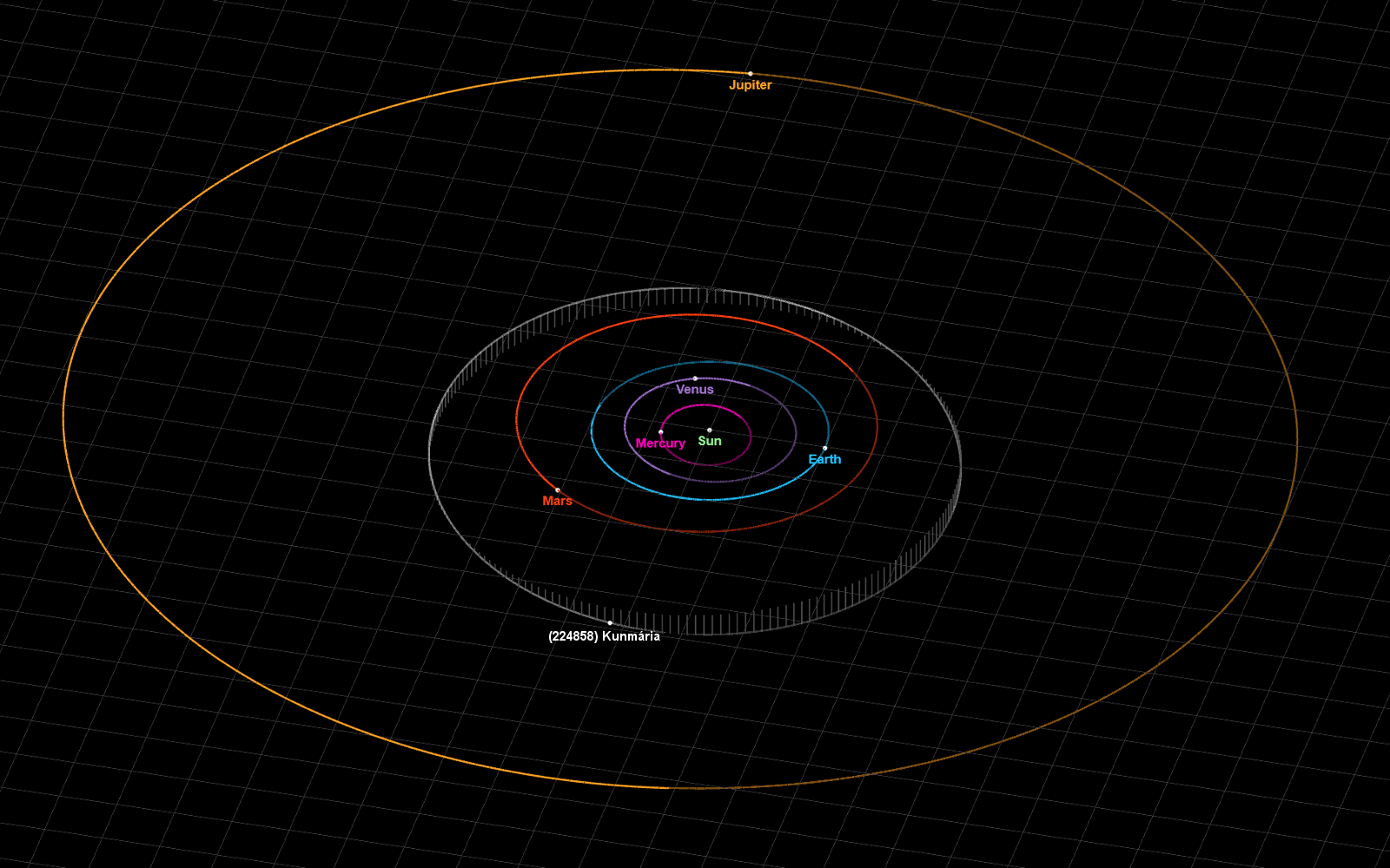 Mária Kun 's research focusses on young stars and star-forming regions in the Milky Way. For decades, she was one of the most active observers using the Schmidt telescope in Piszkéstető, which was used to discover the asteroid named after her. The discovery was made on December 28, 2006. In addition to her scientific work, she has written excellent articles for the Hungarian Astronomical Almanach, translated several popular science books into Hungarian, and edited their translations, actively participating in the public outreach of astronomy in Hungary. The celestial body, provisionally designated 2006 YO49 and numbered 224858, moves in the inner part of the main asteroid belt, orbiting the Sun in 3.45 years on an orbit tilted five degrees relative to the Earth's orbit. Its diameter is around 1 km, so even under favorable conditions, it does not become brighter than magnitude 18.5, and can therefore only be observed using large telescopes.